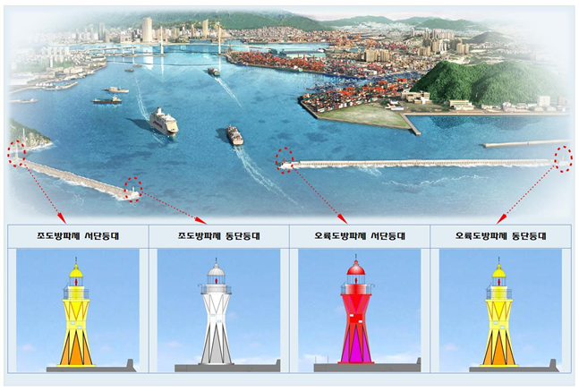 먼저 부산항 입구를 밝히는 조도방파제 등대를 개량하여 시인성을 강화한다.