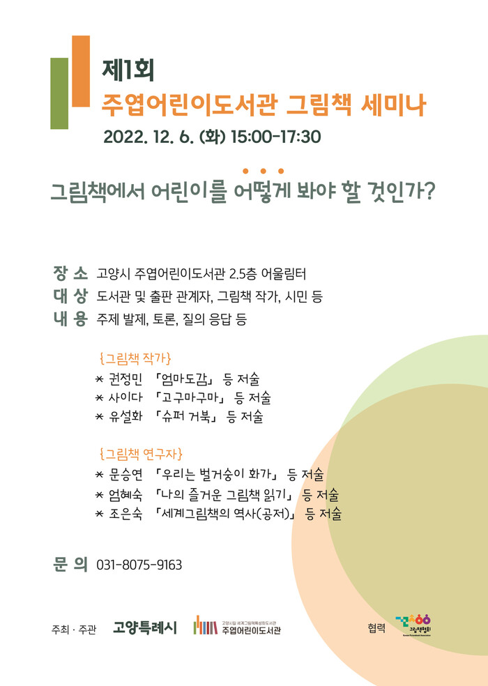 도서관 관계자는 “이번 세미나가 고양시민뿐만 아니라 도서관 및 출판 관계자와 함께 그림책에 대해 전문적으로 논의하는 자리가 되길 바란다”라고 말했다.