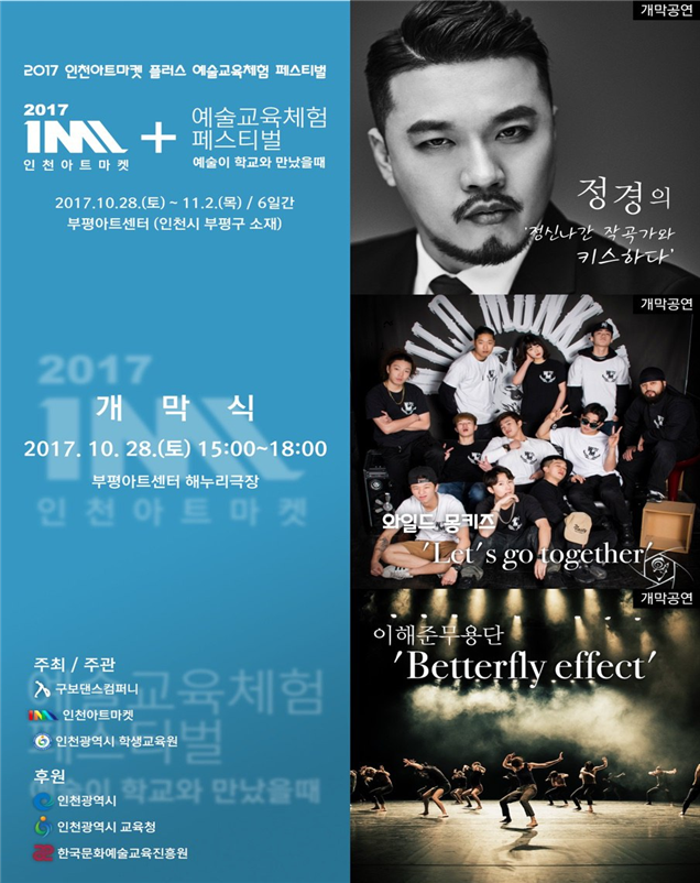 [로컬세계 이민섭 기자]인천시가 오는 28일 오후 3시부터 6시까지 부평아트센터 해누리 극장에서 ‘2017인천아트마켓 플러스 – 예술교육체험페스티벌’을 개최한다고 18일 밝혔다.