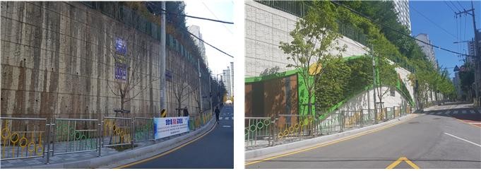 이에 북구는 도시경관개선사업 예산을 확보해, 지역이 베드타운으로 인구밀도가 높고 금정산 등산로와 연결되어 있는 특성을 감안해 식물을 식재하는 자연친화적인 디자인을 가미하고 노후 된 옹벽을 한결 쾌적하고 아름답게 변화시켰다.