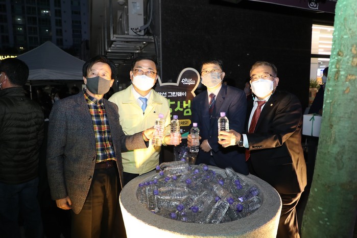 행사에서는 점등식과 함께 박윤규치과의원 원장이 ‘임항선그린웨이 옹달샘’을 만들어 임항선그린웨이를 이용하는 주민들에게 매일 생수 1000병을 무료 나눔하는 전달식과 코로나19로 일상에 지친 주민들이 봄기운을 만끽할 수 있는 작은 음악회도 가졌다.