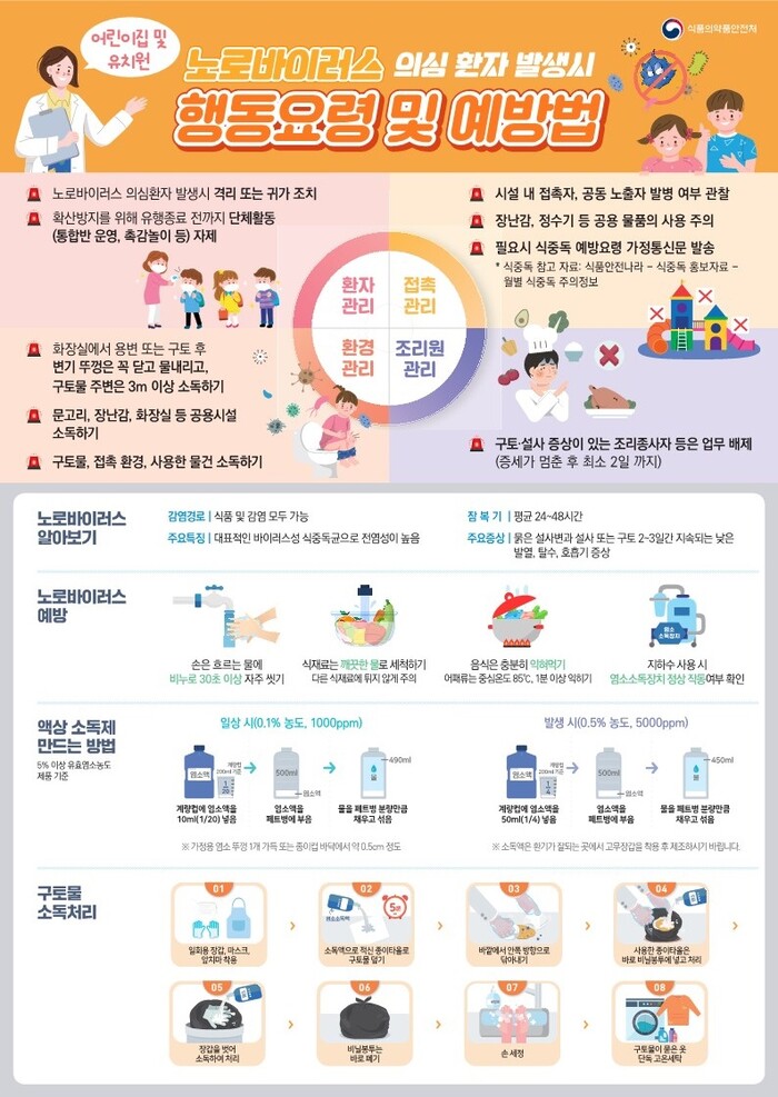 관리원은 관계자에게 노로바이러스 예방법과 환자 발생시 행동요령을 교육·지도했다.