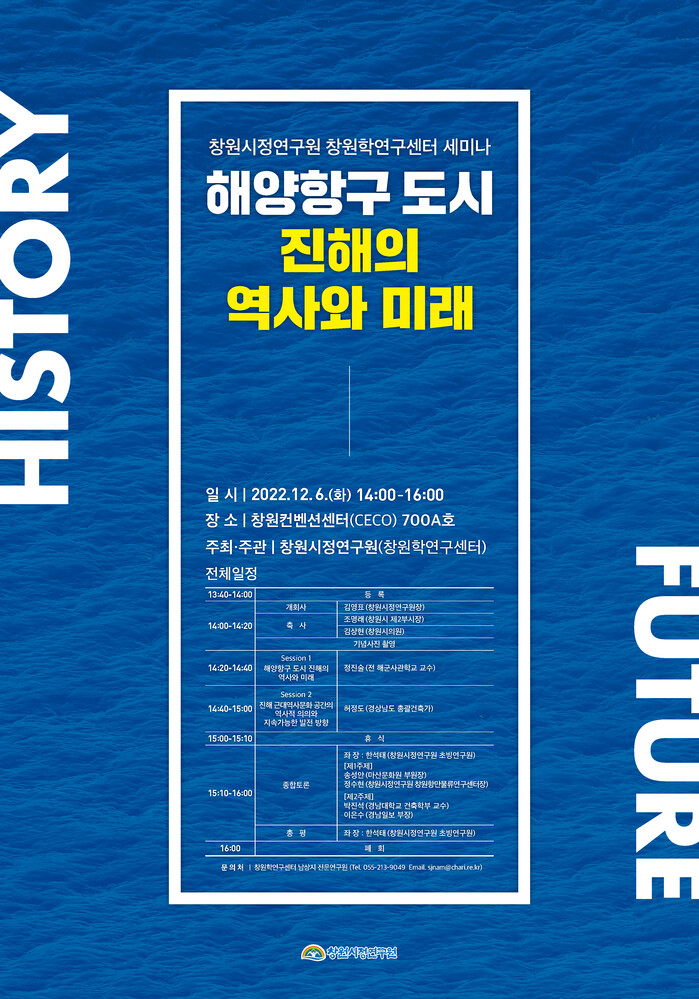 특히 항구도시 진해 지역의 역사적 변화와 현재를 함께 성찰하고, 지역 공간의 잠재력을 발굴하여 창원학 연구의 발전 방향성과 창원학연구센터의 역할이 논의될 예정이다.
