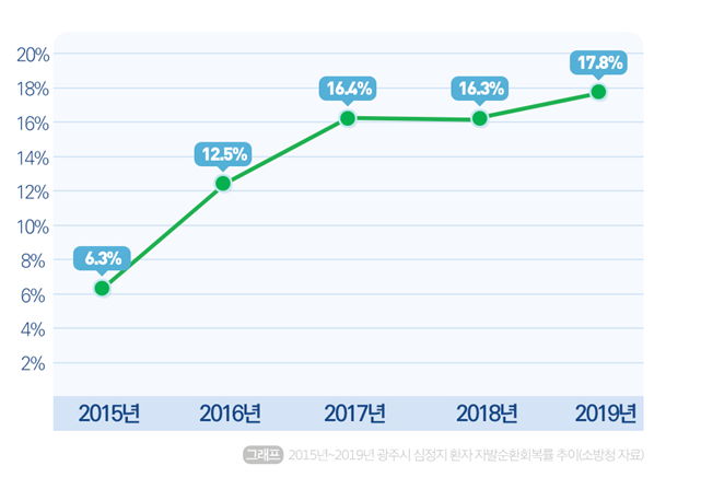▲2015년~2019년 광주시 심정지 환자 자발순환회복률. |