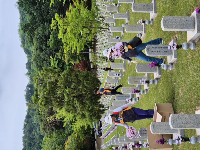 이날 봉사활동에는 KB국민은행 임직원 및 가족 70여 명이 참석해 헌화와 태극기 정비, 환경정화 등의 봉사활동을 실시했다. 이어 현충탑 및 위패봉안관을 참배하며 나라를 위해 목숨 바친 분들의 고귀한 희생정신을 기억하고 감사의 마음을 표하는 시간을 가졌다.