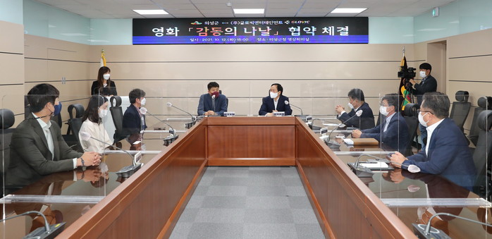 [로컬세계 박상진 기자]경북 의성군은 지난 12일 군청 영상회의실에서 영화제작사 (주)글로빅 엔터테인먼트와 영화제작 지원을 위한 업무 협약을 체결했다고 13일 밝혔다.