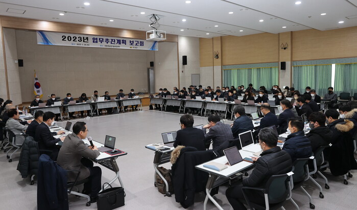 [로컬세계=박상진 기자]경북 의성군은 28일 친환경기술보급센터에서 간부공무원 및 주무팀장 등 100명이 참석해 새해 첫‘주요업무계획 보고회’를 개최했다.