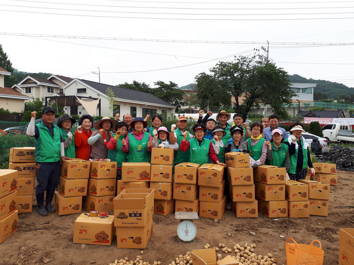 [로컬세계 주덕신 기자]경기 안성 죽산면 새마을지도자회와 새마을부녀회는 지난 14일 죽산면 죽산리 소재 농장에서 재배한 감자 50여 상자를 수확했다고 밝혔다.
