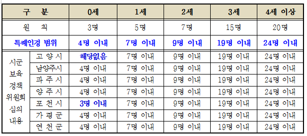 | ▲교사 대 아동비율의 특례 인정 범위. |