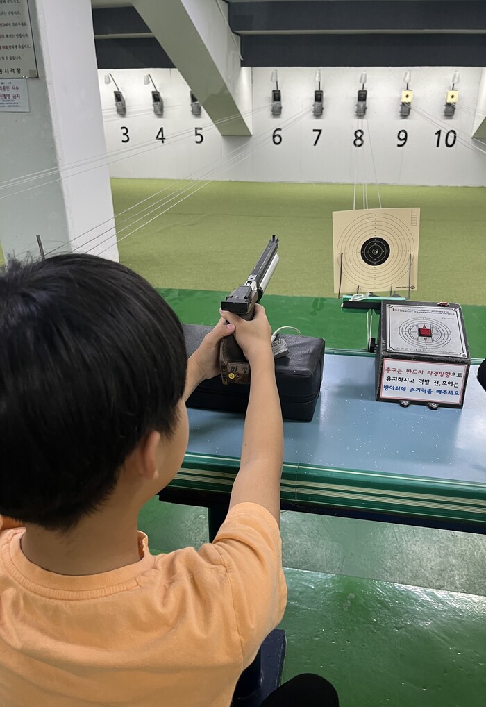 ▲ 지난해 운영한 단기 스포츠체험 강좌에서 청소년이 사격 체험을 하고 있는 모습.(동작구 제공) |