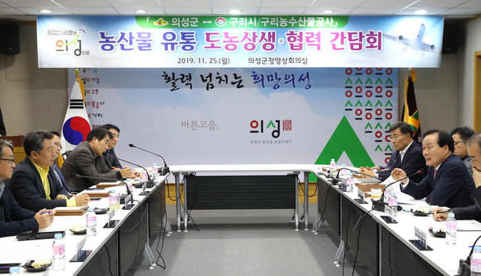 간담회에서는 구리도매시장에 출하하는 의성군의 주요농산물인 사과, 자두, 복숭아 등의 △안정적인 출하물량 확보 △지속적인 판매망 확대에 따른 농업인의 소득증대 △규격포장화 △산지출하 동향 파악 △유통촉진 등 실질적인 상호 이익증진과 상생협력 방안에 대해 심도 있는 논의가 이뤄졌다.