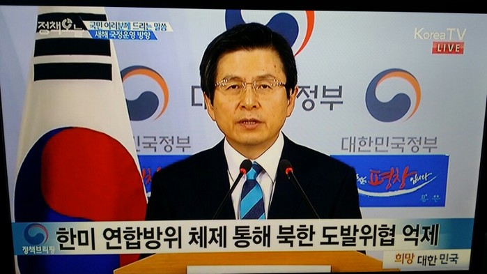황 권한대행은 이날 오전 정부서울청사에서 신년 기자회견을 통해 정부는 “굳건한 안보역량과 한미 연합방위 체제를 바탕으로 북한의 도발위협을 억제하고, 북한이 도발을 감행할 경우 이를 단호히 응징할 수 있는 강력한 안보태세를 구축”하겠다고 말했다.