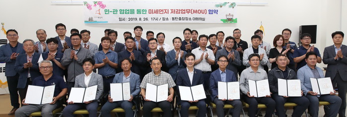 경기 화성시는 지난 26일 동탄출장소 대회의실에서 41개 민간기업과 ‘민·관 협업을 통한 미세먼지 저감 업무협약식’을 체결했다고 27일 밝혔다.