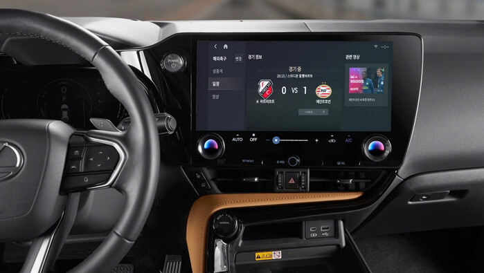 ▲LG유플러스가 토요타코리아의 U+Drive 기반 인포테인먼트 시스템 ‘토요타 커넥트’에 스포츠 커뮤니티 플랫폼 ‘스포키’를 탑재, 차량 운전자에게 차별화된 고객 가치를 제공한다고 22일 밝혔다. 사진은 렉서스 차량 인포테인먼트에 탑재된 스포키 |