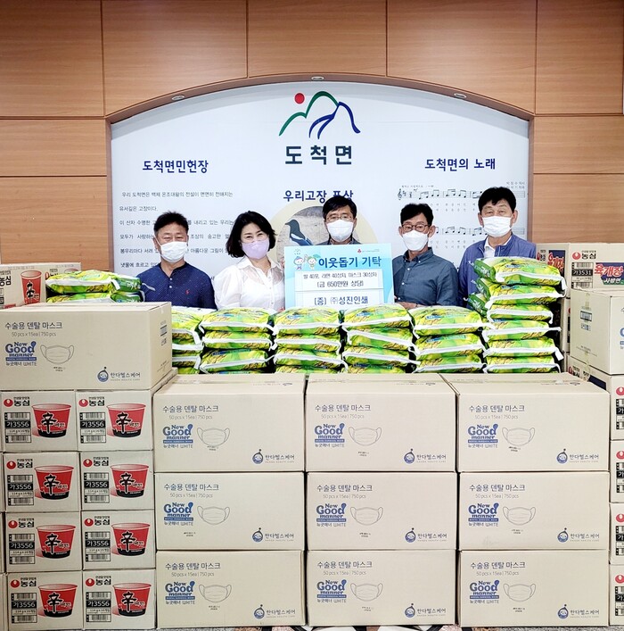 [로컬세계=김병민 기자] ㈜성진인쇄 원미영 대표는 지난 5일 경기 광주시 도척면 관내 경로당에 쌀 40포(10㎏), 라면 40상자, 마스크 30상자(650만원 상당)를 기탁했다.