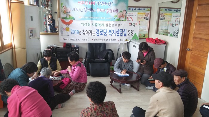 지난해부터 시작된 ‘의성군의 찾아가는 경로당 복지상담실’은 기초생활보장 신청안내 외 35가지 공공복지서비스와 민간복지서비스를 제공하는 원스톱 맞춤형 사업이다.
