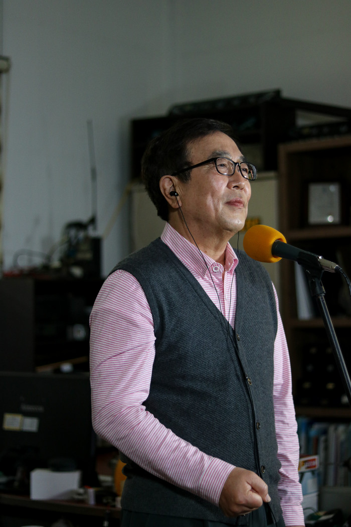 | ▲서병수 미래통합당 부산진구 갑 국회의원 후보가 '국민에게 힘이 되는 노래' 곡명 '일어나' 녹음 모습.(BS통합캠프 제공) |