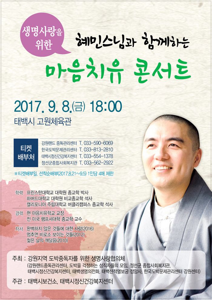 초대권은 태백시 정신건강복지센터에서 배부되며 태백시민 누구나 입장 가능하다.