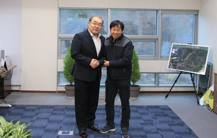 ▲15일 강원도 정선 본사에서 강원랜드 노사공동추진위원회 해단식을 가지면서 한형민 강원랜드 부사장(왼쪽)이 관계자와 기념 사진을 찍고 있다.(강원랜드 제공) |