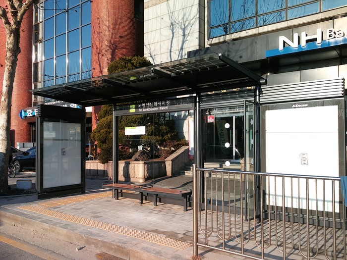 ▲농협 답십리역지점에 설치된 마을버스 승차대. |