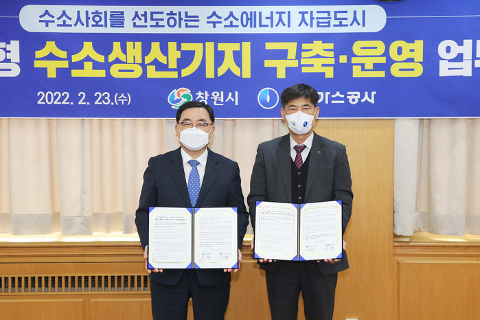 [로컬세계 권인진 기자]경남 창원시(시장 허성무)는 23일 오전 11시 접견실에서 한국가스공사와 함께 ‘창원 거점형수소생산기지 구축·운영’을 위한 협약을 체결했다고 밝혔다.