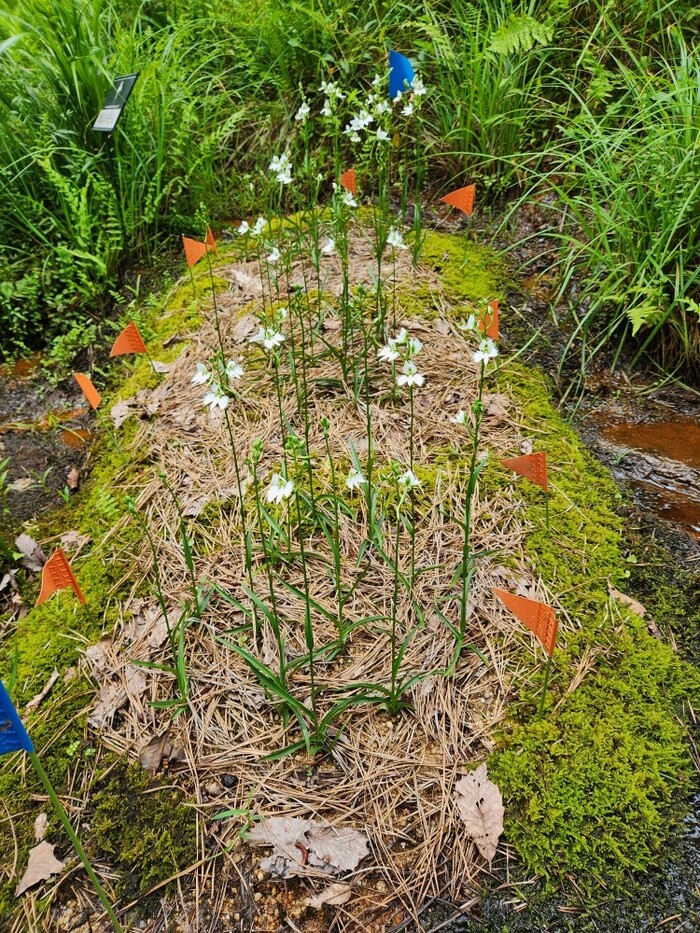 지난해 10월 해오라비난초 구근(球根) 51개체를 칠보습지에 이식했고, 올해 4월 49개체가 새싹을 틔웠다. 지난 8월 1일 1개체가 개화한 것을 시작으로 49개체 모두 개화했거나 개화 직전 상태다.