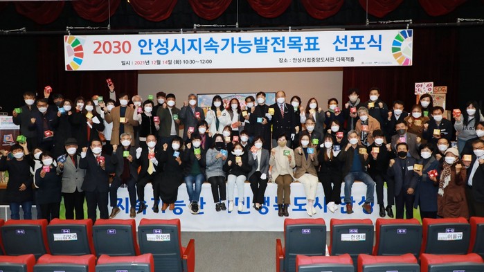 [로컬세계 김병민 기자]경기 안성시는 지난 14일 안성시 지속가능발전협의회(이하 ‘지속협’)와 함께 안성시립중앙도서관에서 '2030 안성시 지속가능발전목표 선포식'을 개최했다고 16일 밝혔다.