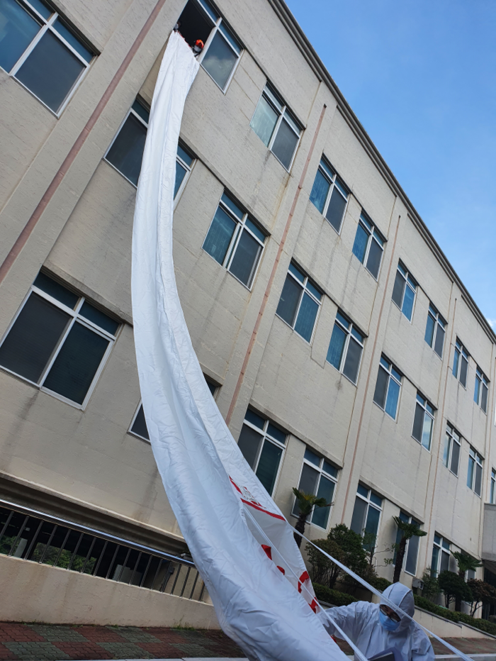 ▲구조대를 통한 피난대피훈련. |