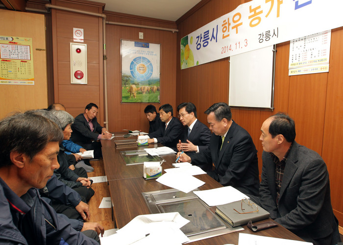 이번 간담회는 축산농가의 건의사항을 듣고 지원방안을 함께 모색하기 위해 마련됐으며 시 가축방역담당으로부터 강릉 한우산업 현황에 대한 설명을 듣고 앞으로의 발전방향에 대해 의견을 나눴다.