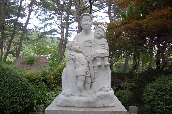 | ▲안음전 : 부산 아동복지시설 ‘새들원’에 있는 안음전 석상 (새들원 제공) |