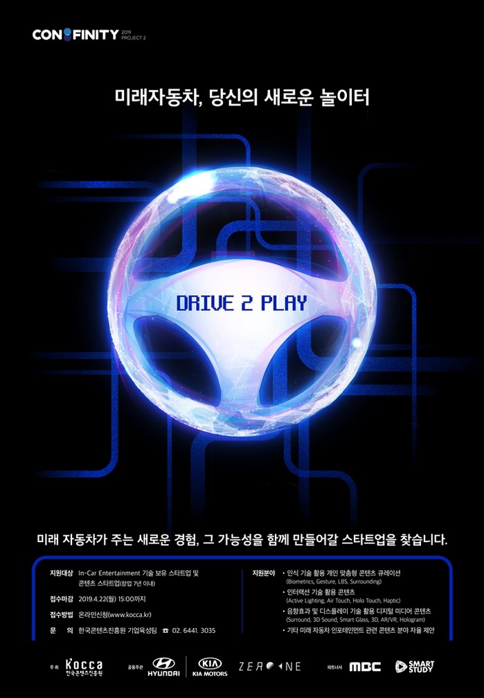 [로컬세계 길도원 기자]문화체육관광부와 한국콘텐츠진흥원은 오는 22일까지 ‘Drive 2 Play-미래자동차, 당신의 새로운 놀이터’ 프로젝트에 참여할 스타트업을 e나라도움 홈페이지를 통해 모집한다고 2일 밝혔다.