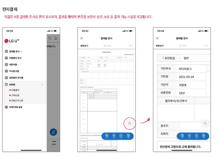 ▲U+웍스 모바일버전 전자결재 화면 [LG유플러스 제공] |