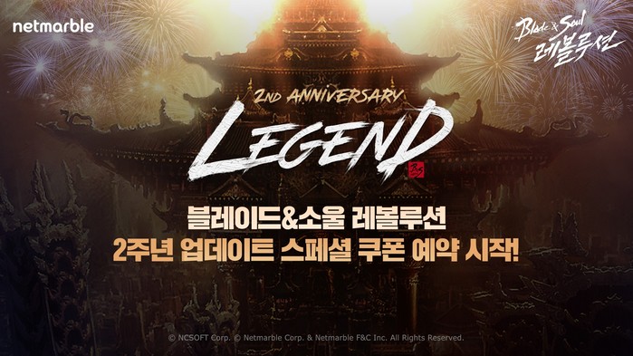 넷마블(대표 권영식, 이승원)은 모바일 MMORPG(다중접속역할수행게임) '블레이드 & 소울 레볼루션(개발사 넷마블에프앤씨)’의 2주년 업데이트에 앞서 특별 페이지(https://bns.netmarble.com/)를 열고 스페셜 쿠폰 예약을 시작한다고 26일 밝혔다.