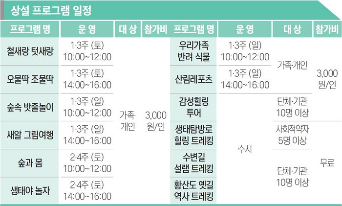 최근 한국관광공사 언택트 관광지 100선에 선정되는 등 언택트 관광지로 각광받고 있는 회동수원지에서 펼쳐질 ‘소풍여행’은 △철새랑텃새랑 △오물딱조물딱 △숲속밧줄놀이 △새알그림여행 △숲과몸 △생태야놀자 △우리가족반려식물 △산림레포츠 등 8개의 주말 상설프로그램과 수시 운영되는 회동수원지 트레킹 프로그램 으로 오는 11월까지 운영된다.유료로 운영되는 일부 프로그램의 참가비는 지역경제 활성화를 위해 회동수원지 일원의 음식점에서 사용가능한 지역음식점 이용 쿠폰으로 교환돼 참가자에게 전달된다.생태테마 관광에 관심 있는 누구나 참가할 수 있으며 신청은 모바일 홈페이지(gohoedong.com)에서 가능하다.