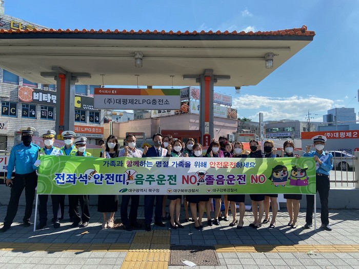 [로컬세계 박세환 기자]대구 북구청은 지난 15일 복현오거리에서 명절 연휴 동안 교통소통을 원활히 하고 교통편의를 제공하기 위해 녹색어머니회, 모범운전자회, 북부경찰서와 합동으로 추석맞이 교통안전 캠페인을 실시했다고 16일 밝혔다.