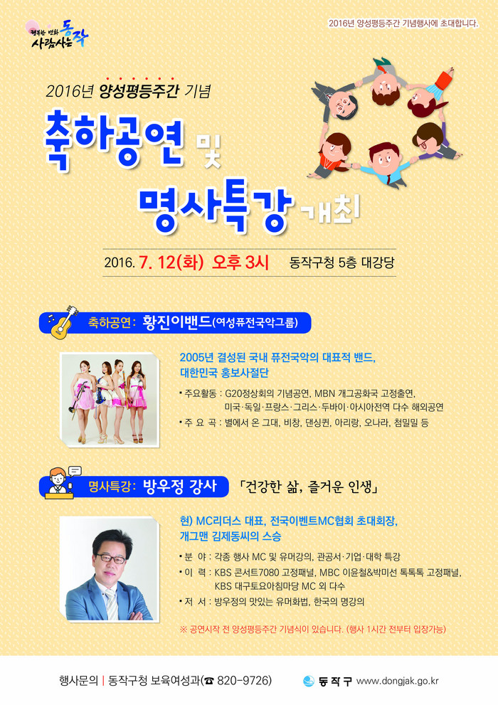 이용칠 보육여성과장은 “이번 기념행사가 양성 평등에 대한 일반 구민들의 관심을 제고하고 사회적 공감대 확산과 양성평등 실현의 비전을 공유하는 장으로 활용되길 기대한다”고 말했다.