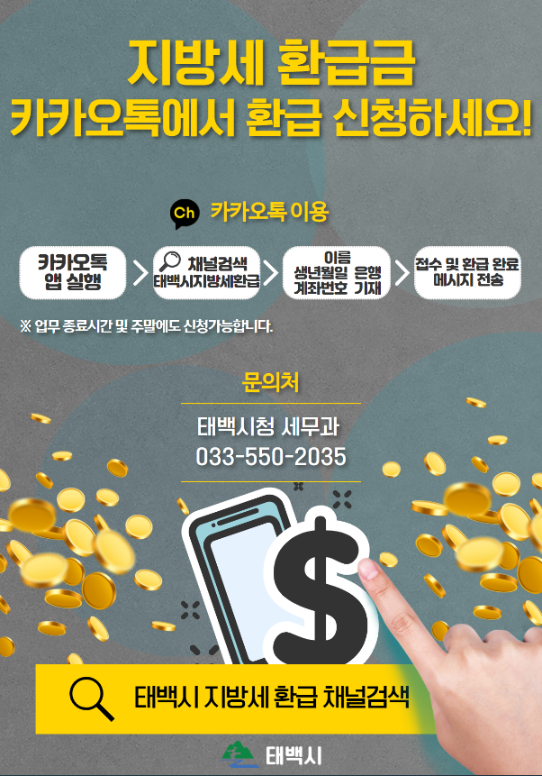 [로컬세계 박상진 기자]강원 태백시(시장 류태호)가 강원도 최초로 4월부터 시행중인 ‘카톡 환급신청 서비스’ 관련 설문조사를 진행하고 있다고 11일 밝혔다.