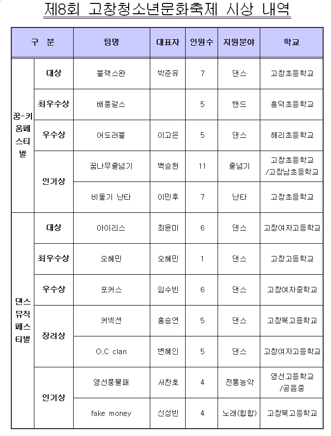 23일 고창군에 따르면 ‘제8회 고창청소년문화축제(놀자~Festival)’이 고창문화의 전당에서 진행됐다. 고창군이 주최하고 고창청소년문화센터가 주관한 이번 축제는 고창의 청소년들이 직접 프로그램을 기획하고, 홍보하고, 참여했다.