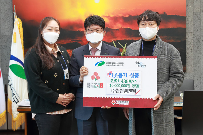 배광식 북구청장은 “경제적 상황이 좋지 않음에도 불구하고 우리 이웃을 위해 따뜻한 응원과 정성을 보내주신 신신엠엔씨 황상필 대표님께 감사의 인사를 전한다”며 “전달해 주신 라면은 필요한 이웃들에게 전달하겠다”고 전했다.