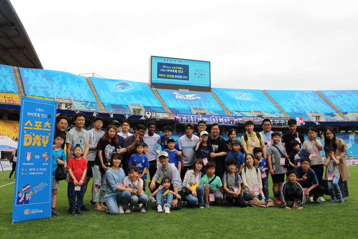 또 이날 경기가 있었던 수원삼성블루윙즈 구단 선수들이 선수단 버스에서 내리자마자 손바닥을 마주치며 응원하는 ‘웰컴버스’ 이벤트에도 참여했다. 참가자들은 이날 열린 수원삼성블루윙즈와 울산현대축구단의 경기를 관람했다.