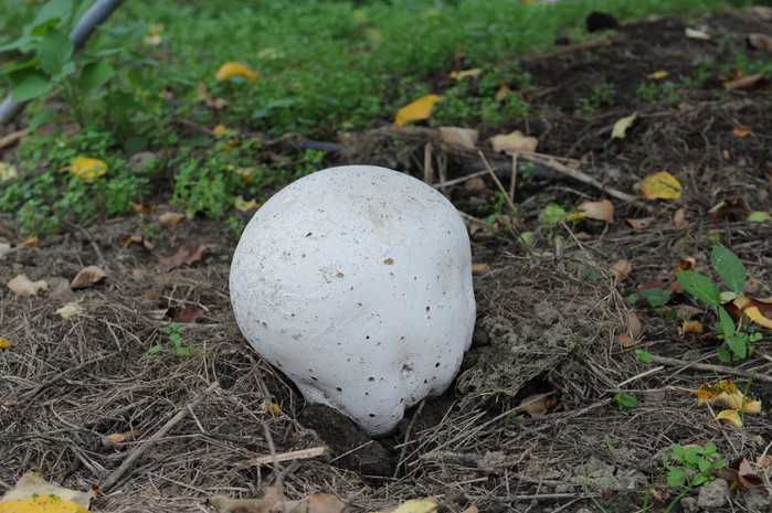 ▲전북 남원시 산내면 주지환씨 사과 밭에서 6년 연속 발견된 댕구알 버섯.(남원시 제공) |