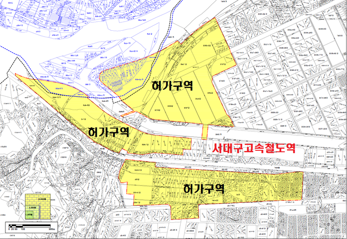 서대구역 개발에 따른 ‘서대구 역세권 개발 미래비전’ 발표에 맞추어 대구시에서 2019년 9월 10일 개발예정지에 대해 토지거래허가구역으로 지정·공고함에 따라, 2019년 9월 16일부터 2024년 9월 15일까지 해당 지역의  매매계약 체결 시 허가대상 면적에 해당될 경우 사전에 토지거래허가를 받아야 매매가 가능하다.