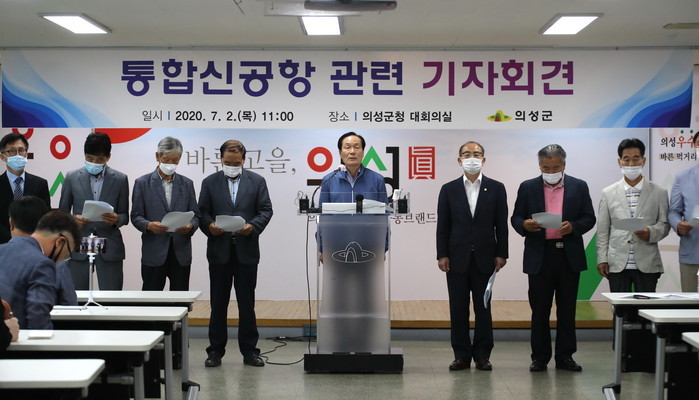 | ▲지난 2일 김주수 군수가 의성군청에서 대구·경북통합신공항 이전과 문제와 관련, 긴급 기자회견을 갖고 있다.(의성군 제공) |