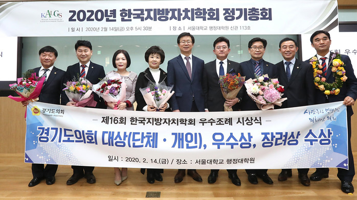 [로컬세계 고기훈 기자]경기도의회가 지난 14일 서울대학교 행정대학원에서 열린 ‘제16회 한국지방자치학회 우수조례 시상식’에서 전국최초로 단체와 개인부문 모두에서 최고상인 대상을 수상하면서 역대최고의 성적을 거두었다고 15일 밝혔다.