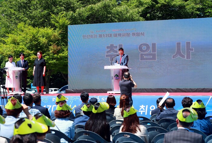 취임식은 한국국악협회태백지부의 식전 공연을 시작으로 개식선언, 국민의례, 축하 메시지 낭독, 취임축하 영상 메시지, 시장에게 바라는 시민 영상 메시지, 취임선서, 취임사, 태백시민 노래 제창 등의 순으로 진행됐다.