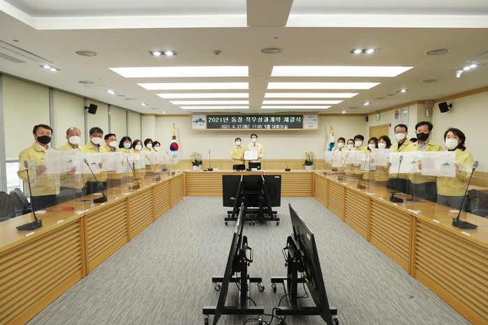 [로컬세계 맹화찬 기자]부산 남구는 지난 27일 남구청 5층 대회의실에서 남구 관내 동장 17명이 참석한 가운데, 2021년도 동장 직무성과계약을 체결했다고 28일 밝혔다.