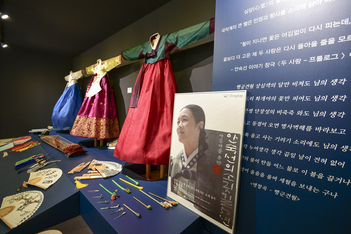안숙선 명창의 소리인생의 기록인 공연의상, 악기, 소품, 작품대본·사설집을 통해 오랜 기간 소리꾼으로서 삶을 살고 있는 명창의 흔적을 펼쳐 보일 계획이다.