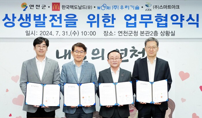 협약식은 전날 31일 오전 10시 연천군청 본관 2층 상황실에서 진행됐으며, 한국맥도날드의 김한일 전무, 양형근 이사, 하만기 이사, 연천군의 김덕현 군수, ㈜우리기술의 노갑선 대표이사, ㈜스마트아크의 김동우 대표이사 등이 참석했다.