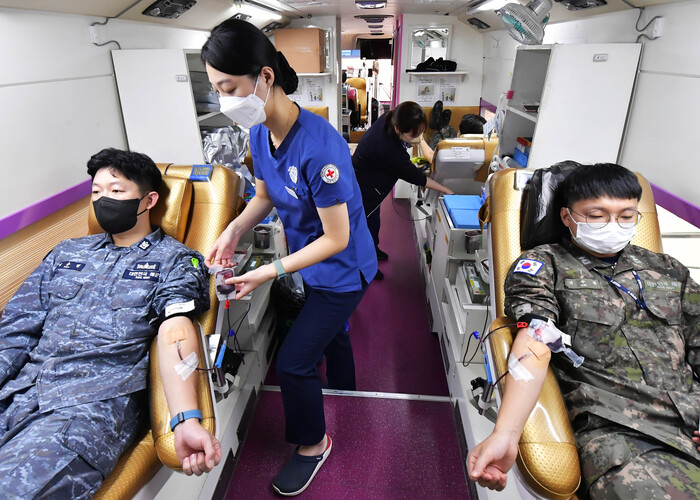 ▲부산 남구에위치한 해군작전사령부 장병들이24~26일까지 3일산 부대에서 사랑의헌혈을 했다. 해군작전사 제공 |