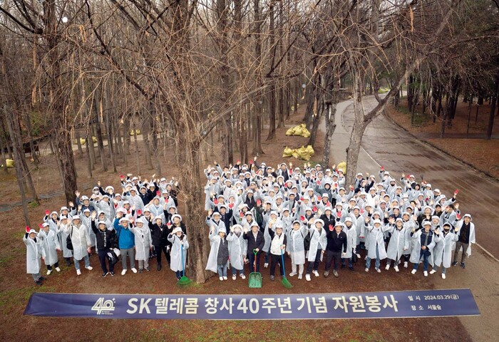 SK텔레콤은 지난 29일 창사 40주년을 맞아 유영상 사장을 비롯한 전사 임직원 약 170명이 서울 성동구에 위치한 서울숲 환경 정화 봉사활동에 참여했다고 31일 밝혔다.